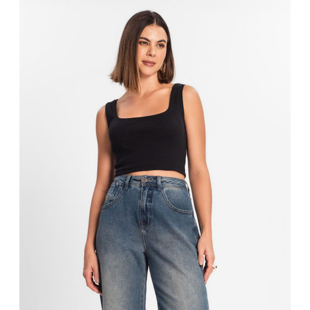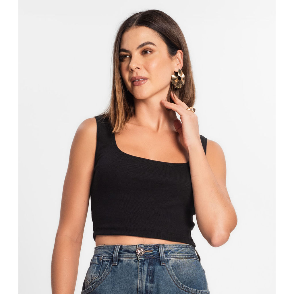 Top Cropped Ribana Básico Rovitex Preto