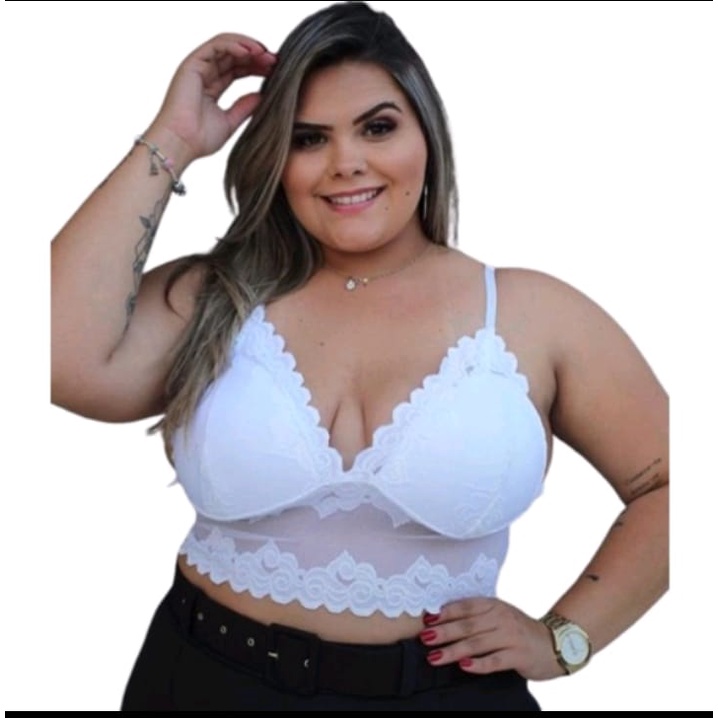 Top Cropped Tiras De Renda Tule Alça E Bojo Plus Size