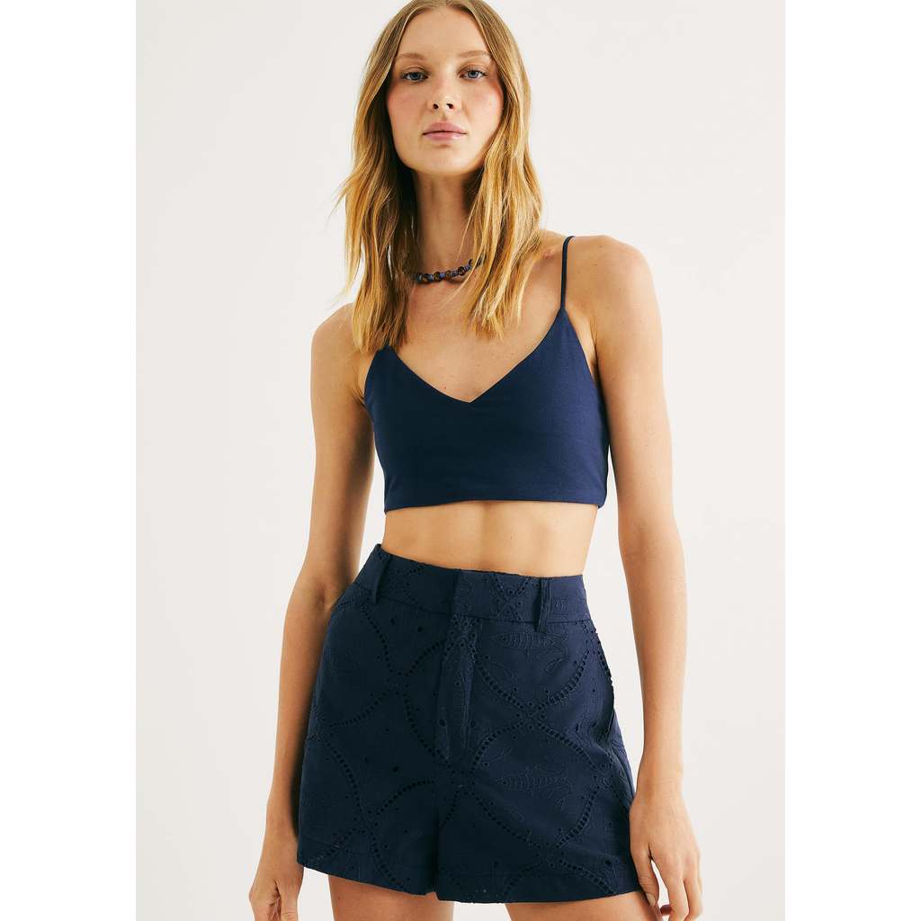 Top Decote V Em Malha De Algodão