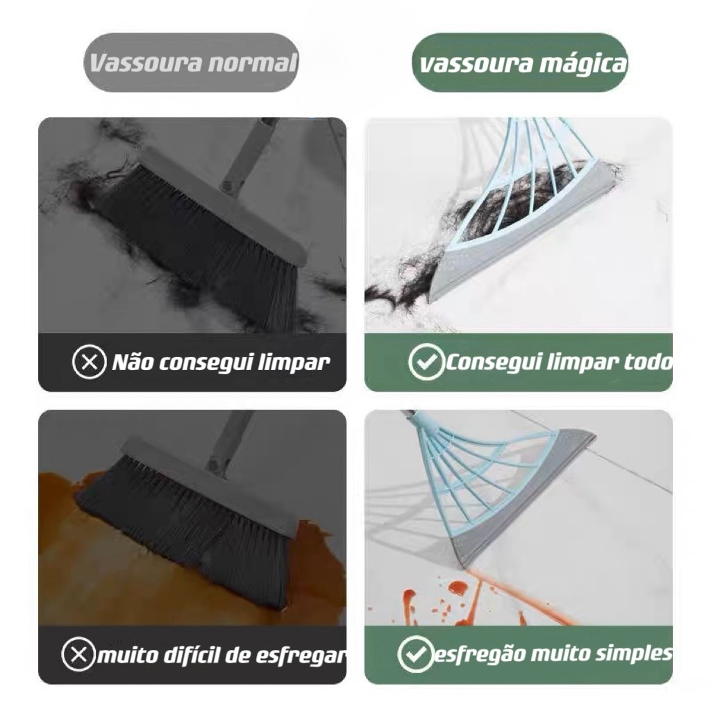 Bem-vindo à nossa loja Loja Indicada Com Envio Imediato e mais rápido Caros Clientes ! Muitos estão se perguntando ao tamanho do cabo estamos com o Cabo de 90cm grande de Encaixe vai com 2 Cabos 1 Rodo , a maioria por ai vende o de 80 cm tamanho pequeno . Também temos a de Cabo de 90 cm grande RETRATIL . O nosso rodo e vassoura mop é tamanho grande Envio Imediato Produto original Especificações Materiais: Plástico + aço inoxidável Cores: verde , cinza Peso do produto 300G Dimensões 90× 32 × 10 cm O Pacote Inclui: 2x – Vassoura mágica multifuncional ENVIO EM 24 HORAS PRODUTO A PRONTA ENTREGA CONHEÇA TODOS OS PRODUTOS EM NOSSA LOJA. APROVEITE AS PROMOÇÕES!!! **ATENÇÃO** PRODUTO DISPONÍVEL EM ESTOQUE. COMPRE ATÉ 12:00h E ENVIAMOS NO MESMO DIA! Vassoura Mágica e Rodo Multifuncional Mop – MagicClean Economize tempo e esforço. A MagicClean não apenas varre, mas também raspa. Limpe e seque a superfície do piso removendo facilmente as sujeiras. Chega de vassouras que garram plumas e que não conseguem remover sujeiras estagnadas com eficácia! O que é a MagicClean? Ela é uma super vassoura multifuncional que serve como vassoura e rodo. Ela não apenas varre, mas também raspa, por isso ela consegue remover sujeiras difíceis e impregnadas com excelência e sem muito esforço e economizando tempo. Porque a MagicClean é muito melhor que as outras vassouras? MagicClean não é uma vassoura comum, ela é uma vassoura “mágica”. Ela não só consegue remover cabelo e gordura rapidamente, mas também pode ser usada como rodo para limpar paredes e vidros. Porque usar a MagicClean e não as vassouras comuns? 2 em 1 multifuncional Porque ela é multifuncional e pode ser usado para limpar pelos, cabelos, líquidos e ainda raspar água e limpar vidros fazendo também todo o trabalho de um rodo Limpeza sob medida O tamanho da alça pode ser ajustado permitindo que você a encolha para limpar sujeiras em mesas, ou ainda a estique e alcance janelas altas com segurança, sem a necessidade de bancos ou escadas e outras áreas de difícil acesso Material de qualidade Material de alta densidade, não quebra nunca Versátil e prática Adequado para sala, cozinha, piscina, garagem, banheiro, também pode ser usado como limpador de vidros em geral Alça ajustável Não ocupe espaço e nem sofra para limpar breves lixos. A alça da MagicWiper pode ser suspensa, o que é bem conveniente para seu armazenamento ou ainda para limpar pequenas sujeiras acumuladas encima de objetos. Sinceramente ao seu serviço