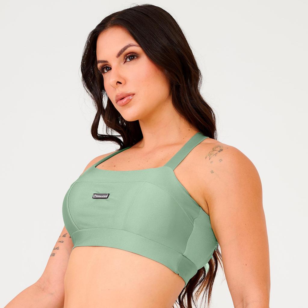 Top Faixa Com Recortes Verde Fluor Platinado Com Bojo