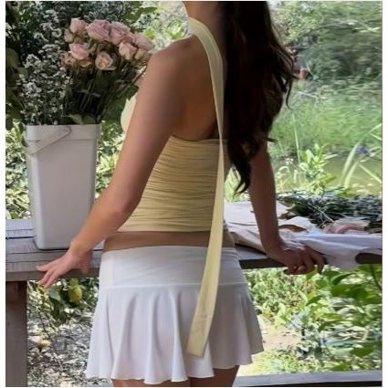 Top faixa cropped feminino tomara que caia drapeado decotado com laço no pescoço tem nota 4.8/5, considerada excelente entre os produtos de Blusas (Roupas Femininas) na Shopee Brasil.
