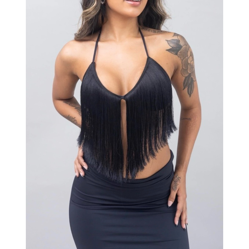 TREND ALERT BABYS ✨🪩💖 O Top Franja Valen é a peça perfeita para quem busca estilo, movimento e sofisticação. Com design marcante, ele combina o visual fashion das franjas com o conforto e a segurança de um biquíni interno. Confeccionado com franjas delicadas no exterior, o modelo possui biquíni interno em poliamida, garantindo melhor sustentação, ajuste ao corpo e conforto ao vestir. O decote em V valoriza o colo, enquanto as franjas criam um efeito fluido e elegante, ideal para produções de praia, festivais ou composições fashionistas. SOBRE A PEÇA: ✔️TAMANHOS: 📏PP (34/36) 📏P (38/40) 📏M (40/42) ✔️TOP COM FRANJAS FRONTAIS; ✔️ BIQUÍNI INTERNO COM POLIAMIDA; ✔️DESIGN MODERNO E SENSUAL; ✔️COSTURA REFORÇADA; ✔️NÃO POSSUI BOJO, MAS É TOTALMENTE FORRADO EM POLIAMIDA; CUIDADOS COM A PEÇA: ✔️ Evitar friccionar, puxar ou enrolar as franjas para não ocorrer queda; ✔️ Lavar somente à mão Não lavar na máquina; ✔️ Manusear com cuidado por se tratar de uma peça delicada. GIRLS, quaisquer dúvida ou problema com a compra, não hesite em nos mandar mensagem, nos dê a oportunidade de te ajudar! A sua satisfação é importante para a nossa loja. Desejamos boas compras! A equipe Bybadgirlsx agradece. #Sejaumahotgirl.