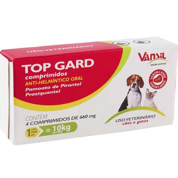 Top Gard 660mg 4 Comprimidos - 1 Comprimido P/ 10kg (Remédio de Verme P/ Cães e Gatos)