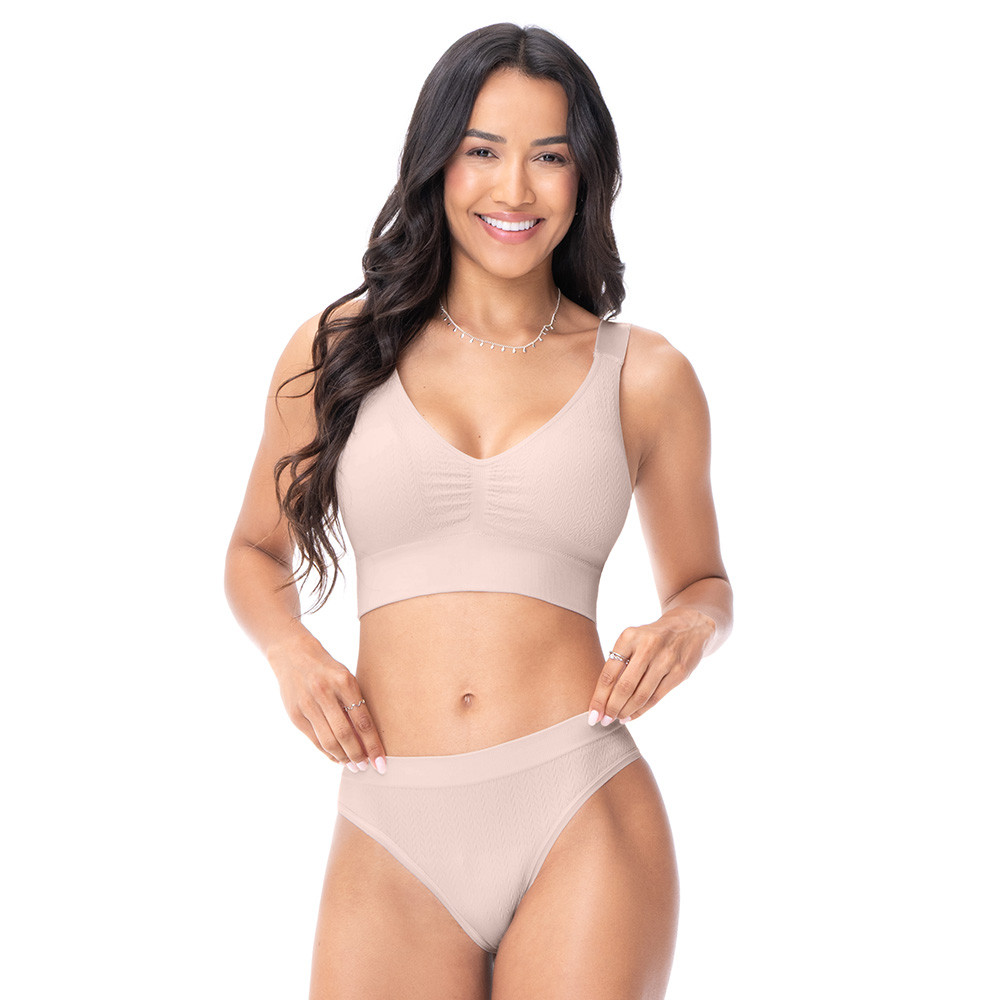 Top Jacquard com Bojo Removível sem Costura Leve Trama Nude Rosado