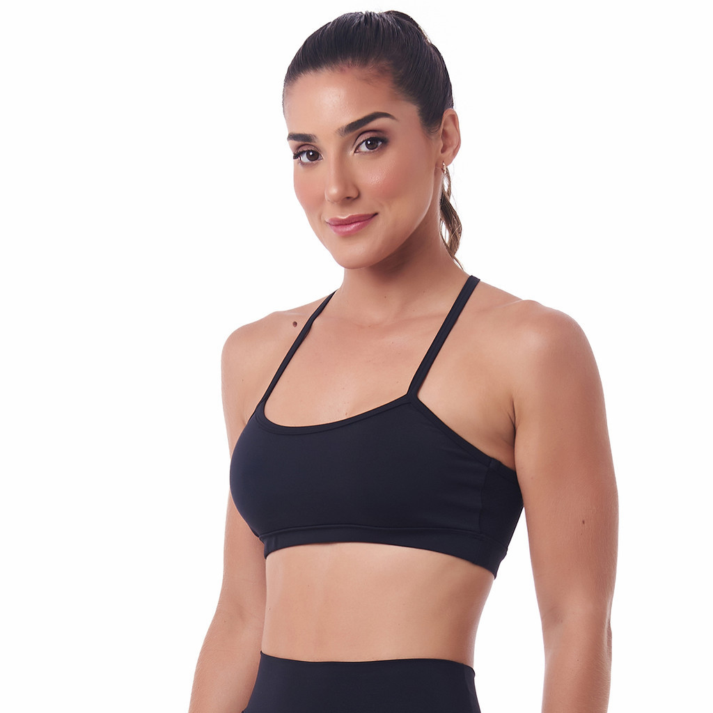 O top Light foi desenvolvido em tecido liso com ótima elasticidade, decote frontal arredondado, alças finas e paralelas, suas costas possui modelagem nadador e recorte vazado moderno e super sofisticado que foi confeccionado com tecido telado de poliamida e elastano que auxilia na temperatura corporal. O top possui bojo removível** Média compressão. A tecnologia do tecido conta com proteção solar permanente UV50+ - Dry e Air, que permitem secagem rápida e termorregulação da temperatura corporal, para maior conforto térmico. Nesta foto, a modelo veste o top tamanho P Observe as instruções de lavagem que acompanham a peça. Qualidade Garantida Modelagem Fitness Exclusiva SND