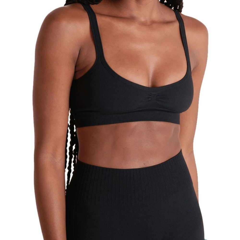 Top sem costura com modelagem alongada, base em poliamida brilhante, trazendo uma leve cintilância e textura lisa ao produto. As linhas e pontos desenham o top no corpo e trazem uma informação de moda. Possui decote quadrado e alça média que acomoda bem o busto, com média sustenção. Garanta já o seu!