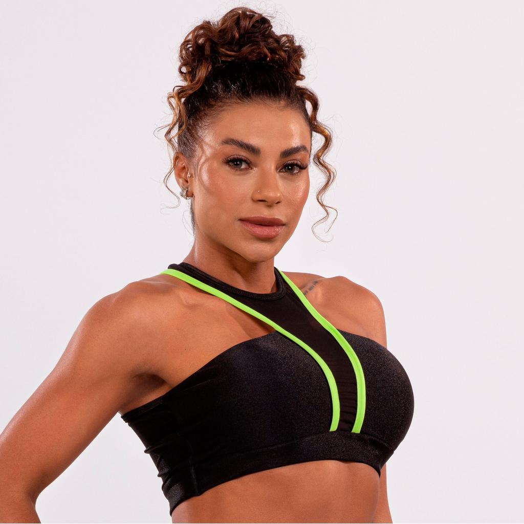 Eleve seu estilo e desempenho nos treinos com esse top. Confeccionado em Mix de Tecidos: Platinado e Texturizado (75% Poliamida, 25% Elastano) de leve brilho, abraçando perfeitamente o corpo. Os recortes estratégicos, detalhe em vivo e decote em tule acrescentam um toque distintivo à peça. Para maior conforto durante os treinos, o top possui forro e bojo removível. Elegância, desempenho e proteção em uma única peça. Não tem como deixar passar!