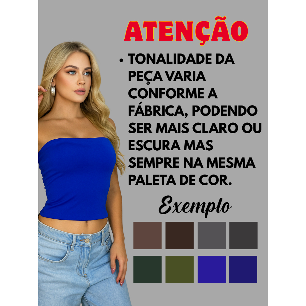 Blusa Feminina Top Tube Tubinho *atenção a cor sortida : *NÃO SERÁ POSSÍVEL SOLICITAR COR NO CHAT *ENVIO SERÁ FEITA DE COR ALEATÓRIA CONFORME NOSSA PREFERÊNCIA DE EST@QUE *PEÇA PERFEITA ASSIM COMO QUALQUER OUTRA COR SELECIONÁVEL *EM COMPRAS DE MAIS QUANTIDADES PODE IR COM REPETIÇÕES. • Modelagem Perfeita: Esta blusa feminina top tube tubinho é ideal para quem busca um ajuste modelador cinturada. 🎀 Feita em suplex premium gramatura 280, com dupla camada frente não fica transparente, oferece suporte e conforto. • Sem Bojo: A característica "sem bojo" garante que a blusa permaneça firme durante todo o dia. Perfeita para looks casuais ou semi-formais. • Detalhes: Com design cropped, esta peça é versátil e combina facilmente com diversos estilos. O estilo tomara que caia sem alças adiciona um toque moderno ao seu guarda-roupa com elástico sustenta e não deixa ficar descendo. • Versatilidade: Ideal para ocasiões diversas, esta blusa é uma adição essencial para qualquer mulher que valoriza estilo e conforto. Combina com absolutamente tudo.