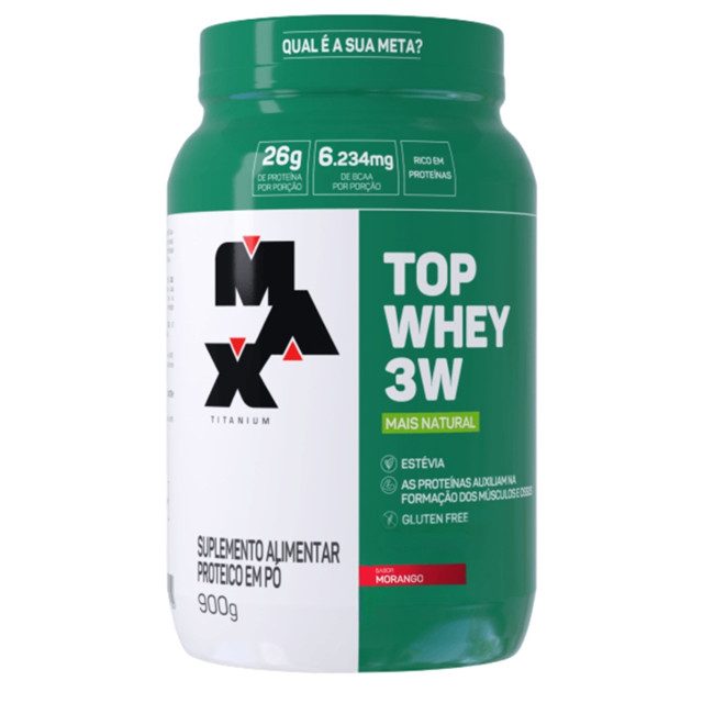 | Top Whey 3w + Natural Pote 900g Max Titanium Morango este produto | R$ 229,99 | — | 5.0/5 | — |