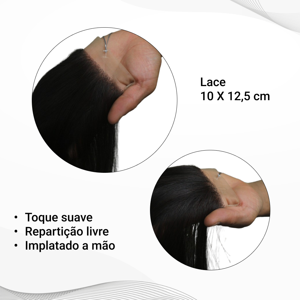 A Top Closure Orgânico HD 4x5 eleva o visual a outro nível, sendo ideal para quem busca acabamento natural, discreto e sofisticado. Desenvolvida com renda HD transparente, ela se adapta perfeitamente à pele, é fácil de aplicar e praticamente imperceptível, eliminando o receio da renda ficar aparente. Conta com baby hair exclusivo, que complementa o visual com naturalidade, além de renda suíça macia, compatível com qualquer adesivo de lace. Seu espaço de repartição livre 4x5 oferece mais versatilidade na finalização e liberdade para criar diferentes estilos. Com 50 cm de comprimento, a Top Closure Orgânico HD é ideal para perucas e próteses capilares, garantindo confiança, realismo e resultado profissional em qualquer aplicação.