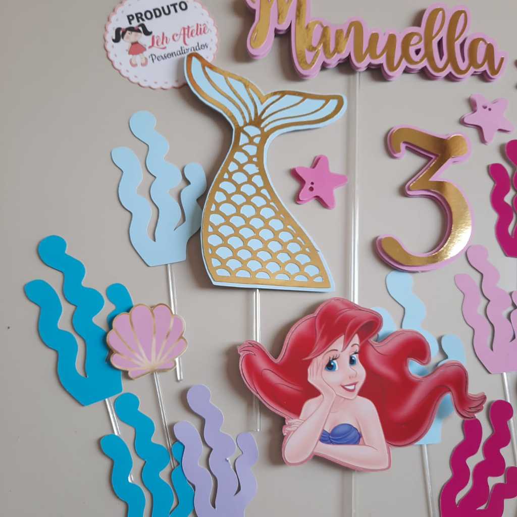 Topo de bolo Ariel a Pequena Sereia 4 - 3d