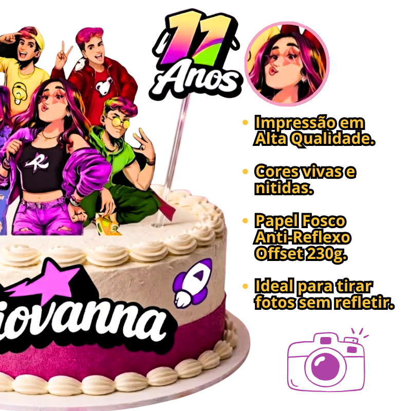 Topo de Bolo Clube dos Rosas Aniversario ou Mesversario Emilly Vick Infantil de Festa Personalizado