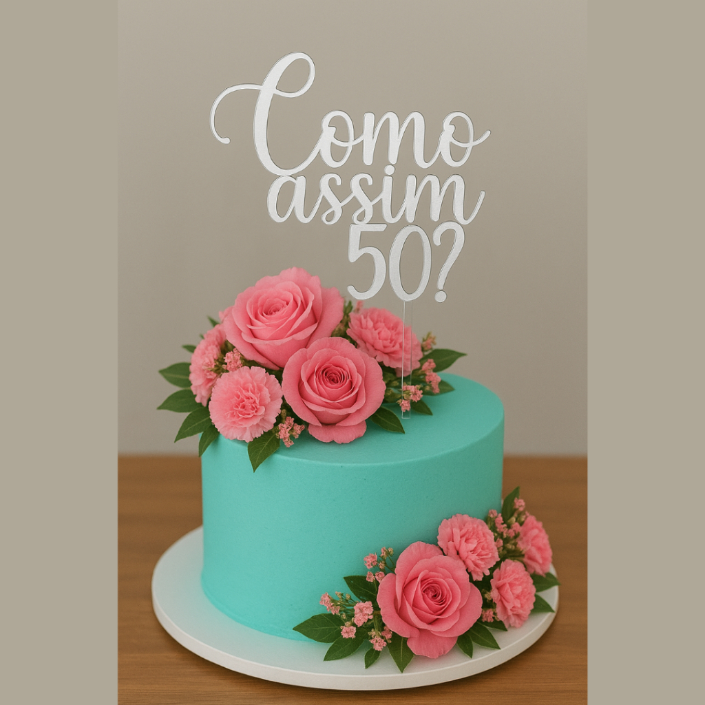 Topo de Bolo “Como Assim 50?” – Espelhado Luxo 🎉
