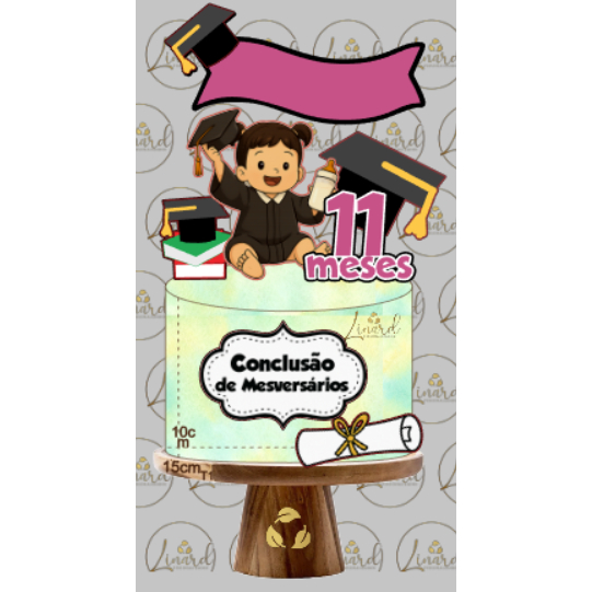 Topo de Bolo - Conclusão de Mesversário - Formatura - Menina - Envio Imediato