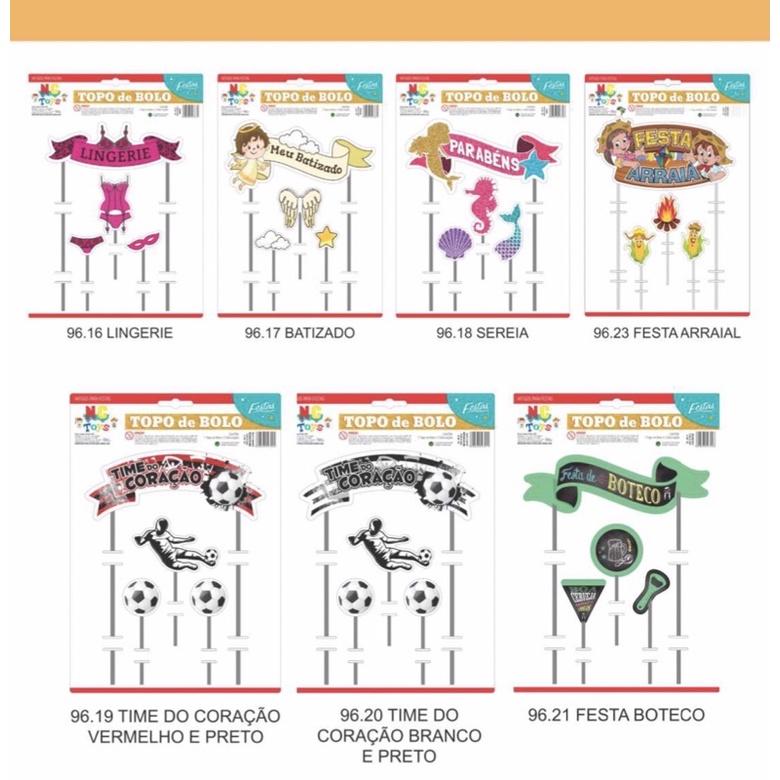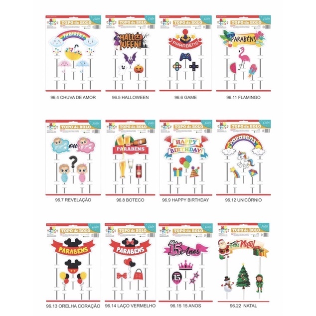 | topo de bolo festa vários temas este produto | R$ 11,24 | — | 4.7/5 | — |