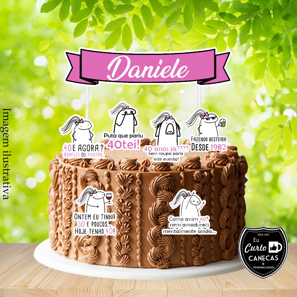 Topo De Bolo Flork Quarentei 40tei feminino e masculino (LEIA A DESCRIÇÃO)