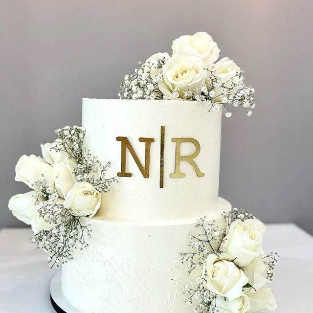 Topo de Bolo Iniciais Noivos Luxo – Acrílico Espelhado Personalizado
