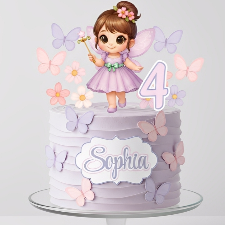 Topo de Bolo Jardim das Borboletas/ Fadinha Lilás com Borboletas / topper/ mesversário menina.