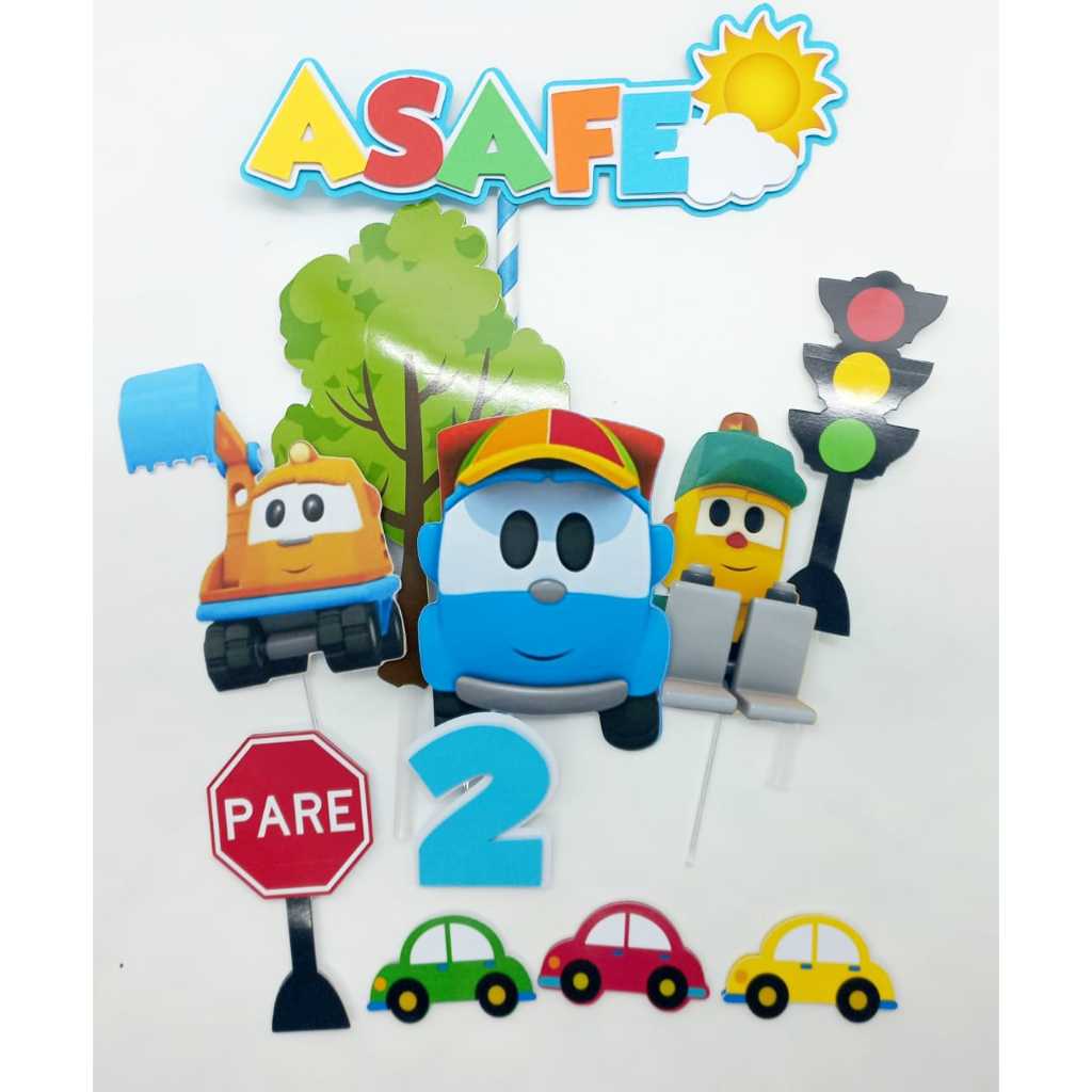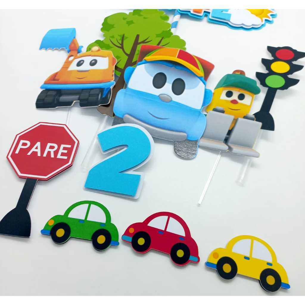 Topo de bolo Léo o Caminhão e amigos, aniversario, mesversario