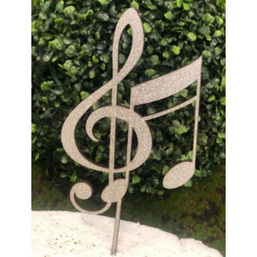 Topo de Bolo Nota Musical Glitter Prata Sonho Fino Rizzo Confeitaria