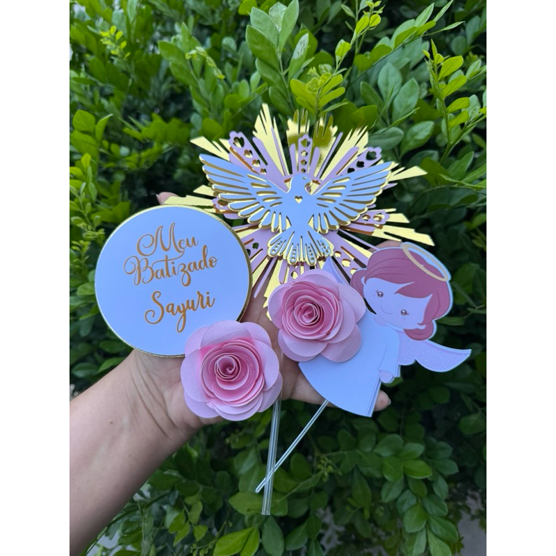Topo de Bolo Personalizado para Batizado - Primeira Comunhão - Primeira Eucaristia