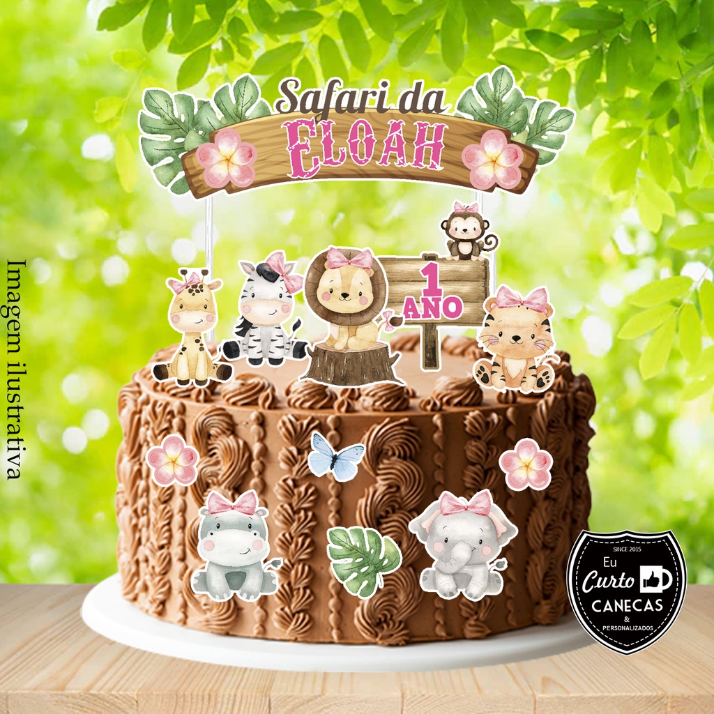 Topo De Bolo Safari Aquarela Menina (LEIA A DDESCRIÇÃO)