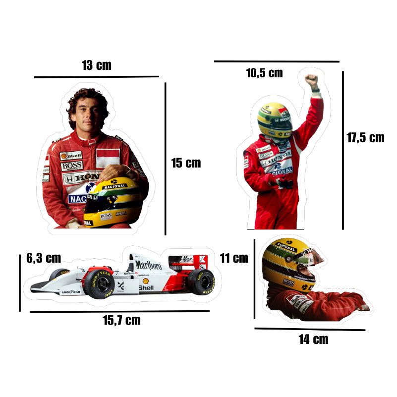 Topo de bolo simples Ayrton Senna + 4 Displays de mesa