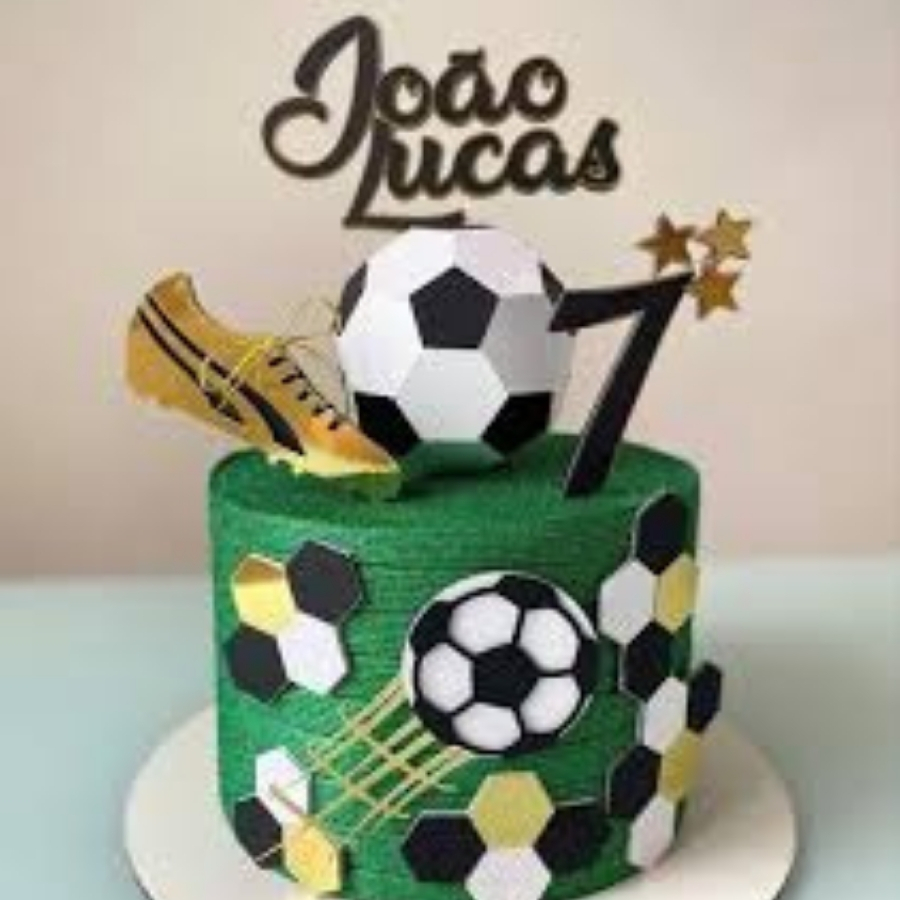 Topo de Bolo Personalizado - Futebol Enxoval 🎉 Transforme o bolo de aniversário do seu filho com um toque especial! Nosso topo de bolo personalizado é a escolha perfeita para celebrar o amor pelo futebol. Detalhes do Produto: - Feito com papel glossy de alta qualidade, garantindo um acabamento impecável. - Recorte digital preciso para um visual incrível. - Palitos de acrílico que proporcionam estabilidade e segurança. Personalização: - Inclui o nome e idade do aniversariante, tornando o momento ainda mais especial. - As cores dos canudos variam conforme o estoque, sempre respeitando a paleta de cores. Como Personalizar: - Basta enviar o nome e idade desejados para que o topo fique pronto para o seu evento. Celebre com estilo e personalidade com nosso topo de bolo temático de futebol!