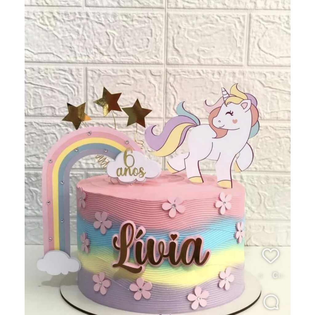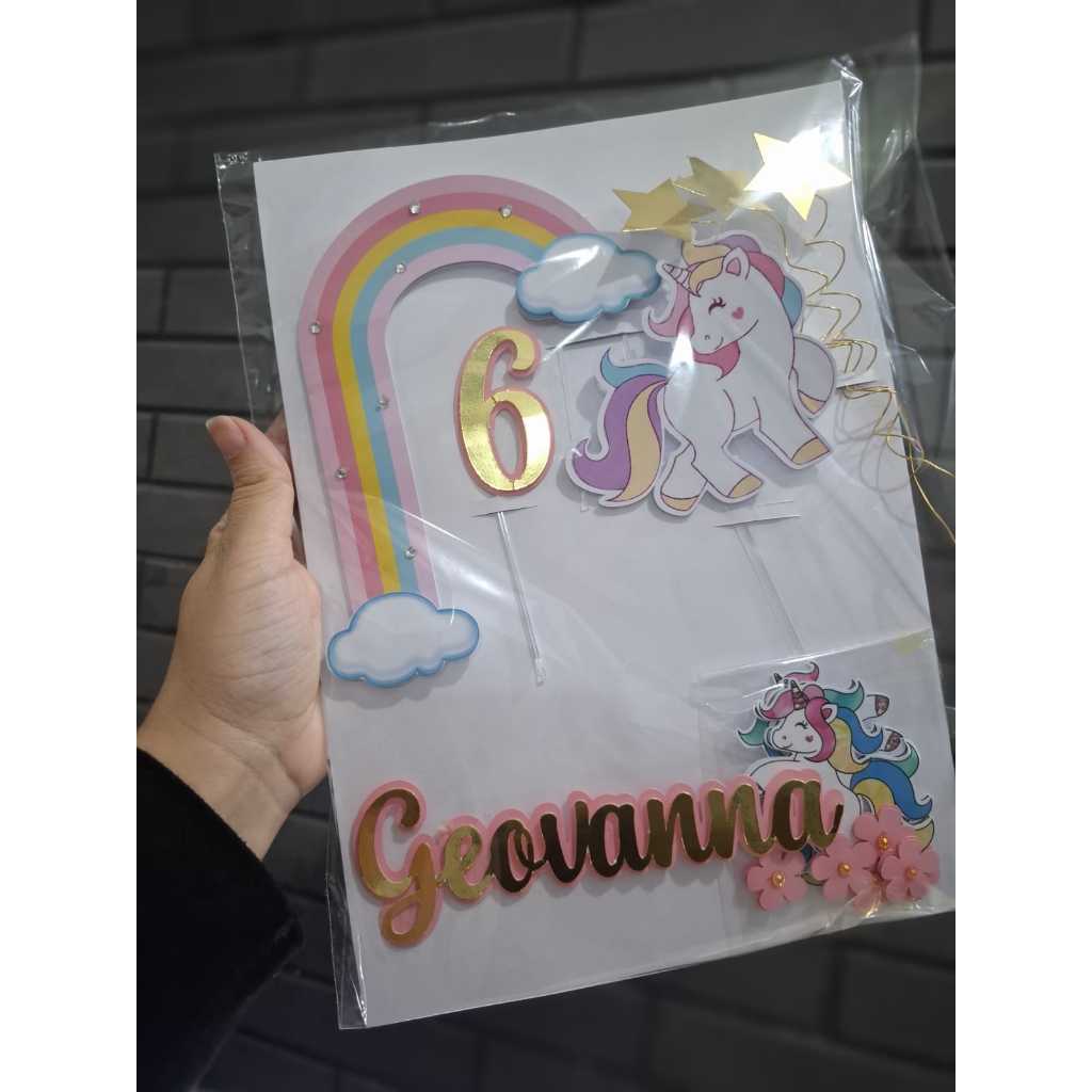 Topo de Bolo Unicórnio Personalizado 3D, festa Unicórnio