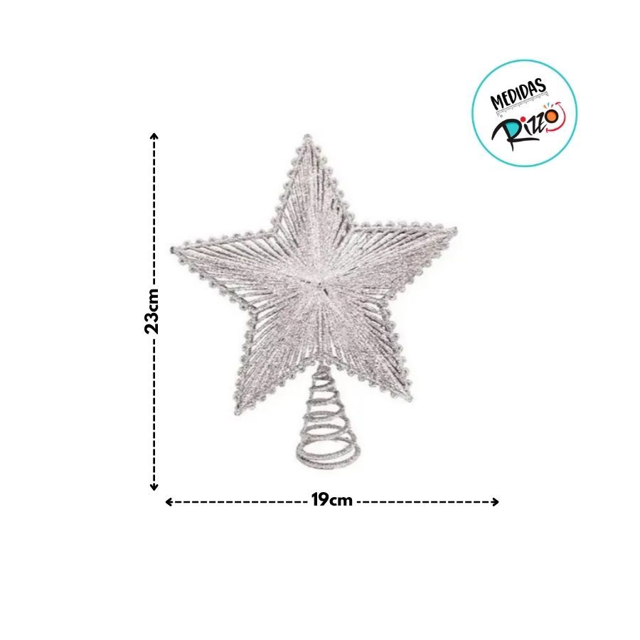 Topo Estrela Para Árvore de Natal - Prata - 23x19cm - RZO02030 - 1 unidade - Rizzo