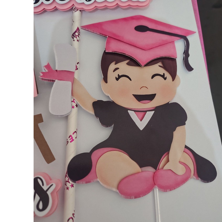 🎓✨ Topper de Bolo – Conclusão de Mesversário | Tema Formatura Baby | Personalizado ✨🎓 Transforme o mesversário da sua pequena (o) em um momento inesquecível! Nosso topper de bolo tem design exclusivo, super delicado e cheio de detalhes que fazem toda diferença na decoração. 💗 CARACTERÍSTICAS DO PRODUTO: ✔️ Arte em camadas (3D) com acabamento impecável ✔️ Personagem fofinha (o) temática de formatura ✔️ Escrita personalizada com nome e idade da criança ✔️ Cores vivas e recorte perfeito ✔️ Ideal para topo de bolo, centro de mesa ou cenário para fotos 🎀 PERFEITO PARA: • Mesversário • Smash the cake • Ensaios fotográficos • Festinhas íntimas ou temáticas 💡 Destaque do produto: Um topper que combina delicadeza, modernidade e muita fofura, deixando o momento ainda mais especial. Sua festa vai ficar com um visual profissional sem esforço! 📦 Produzido com materiais de qualidade, estruturado para ficar firme e lindo no bolo. 🎁 Personalização disponível! ***Enviar no chat após a compra o nome desejado para personalização***