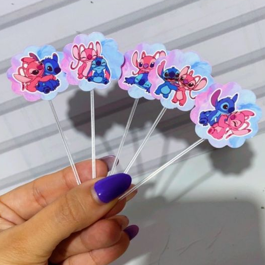 Topper de docinhos ou cupcake Stitch e Angel/tags Stitch e Angel/ Festa Stitch e Angel