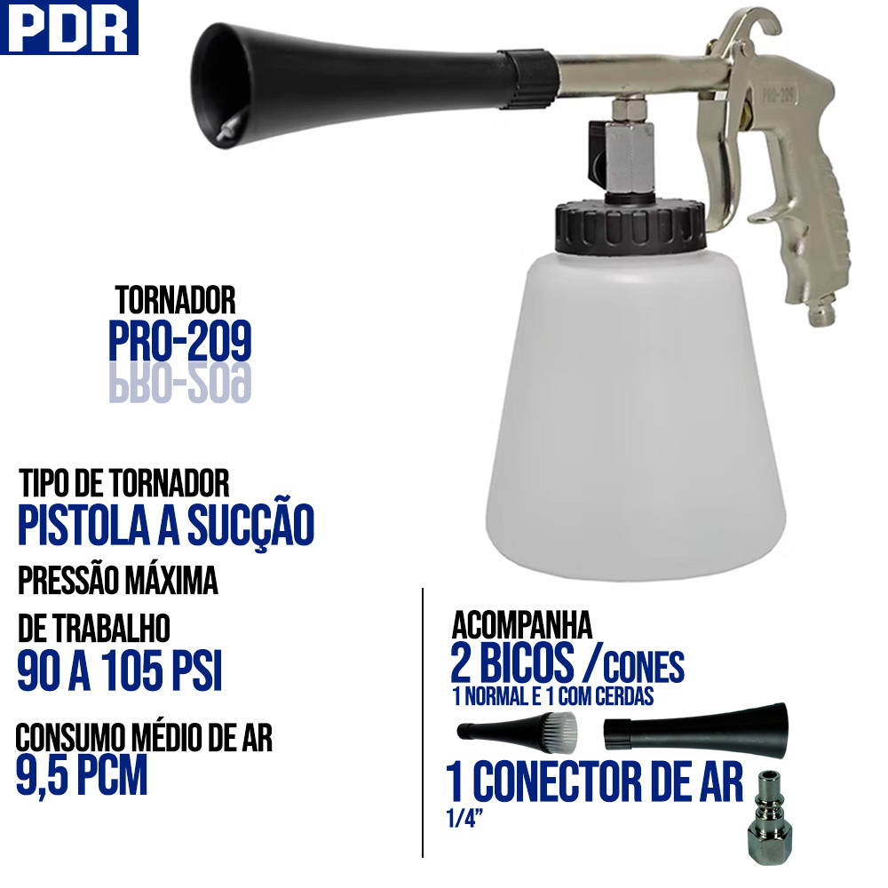 Tornador a Sucção PDR PRO 209 para Limpeza Automotiva Copo 1000ml Bico com Cerdas