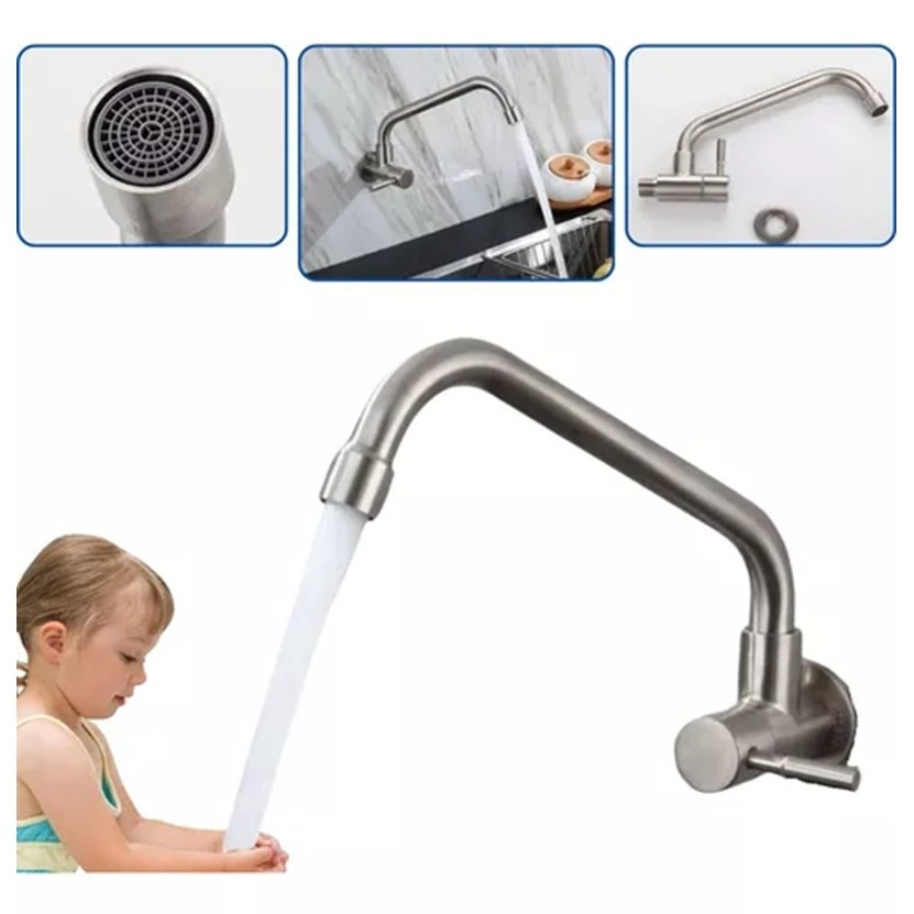 Torneira 1/4 DE VOLTA Giratória para Cozinha de Aco Inox Escovado Com Giro 360grau