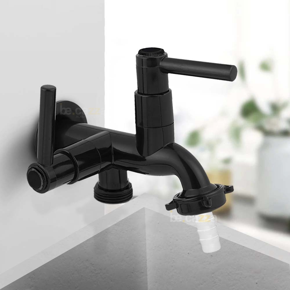 Torneira 2 saídas - Maquina de Lavar e Tanque Área de serviço Preta 1/4 de volta em ABS