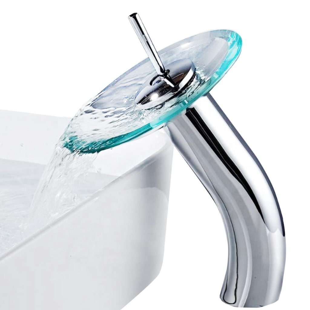 Torneira Banheiro Cascata Alta Vidro Misturador Monocomando