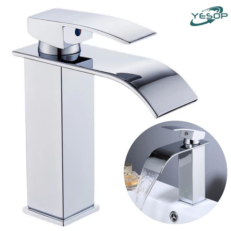 Torneira Banheiro Cascata Monocomando Misturador Bica Baixa 18cm Inox Cromada Yesop