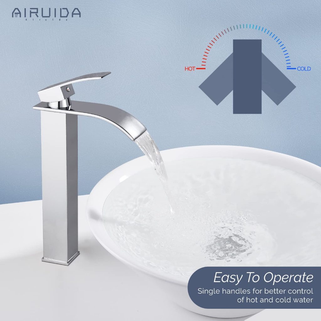 Torneira Banheiro Cuba Alta Cascata Inox Bancada Metal Acabamento Brilhante Yesop