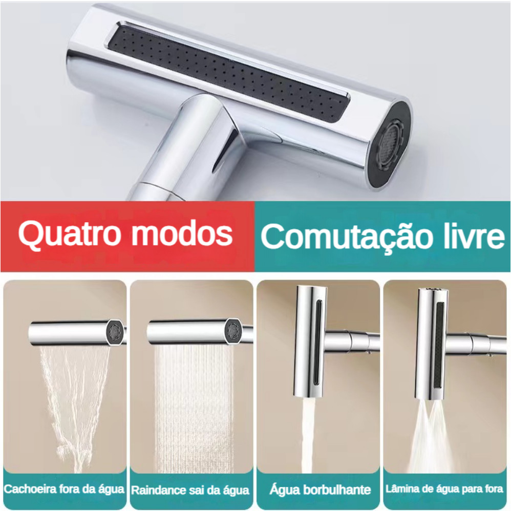 Torneira Banheiro De Metal Espesso Quatro Modos Torneira Gourmet Flexível Cozinha Parede Aço Bancada Monocomando Spray