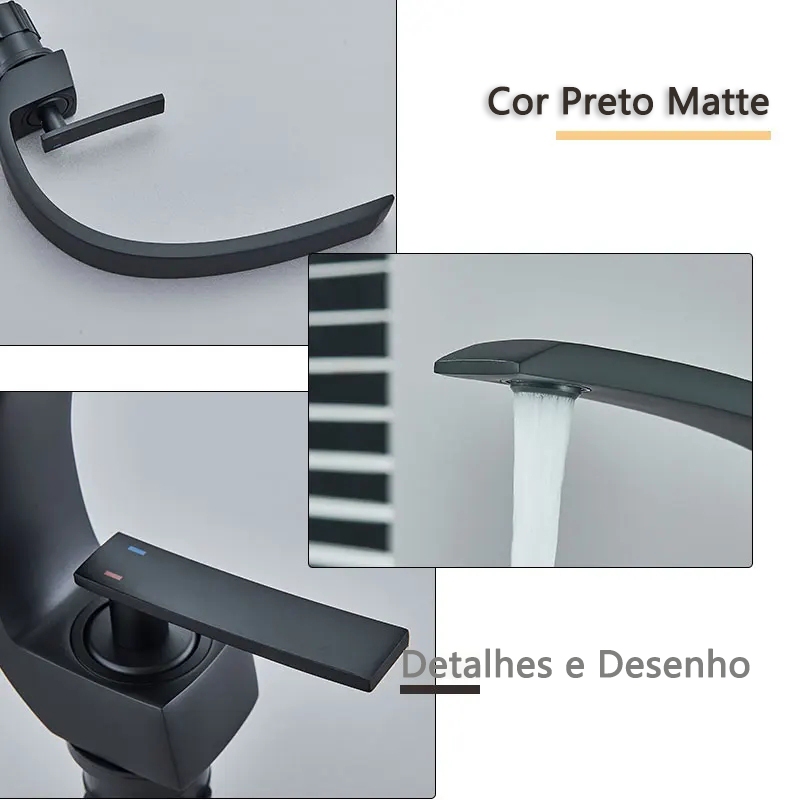 Torneira Banheiro Lavabo ascata Monocomando Curva Linha Quente e Fria Luxo Dourado Preto Cromado