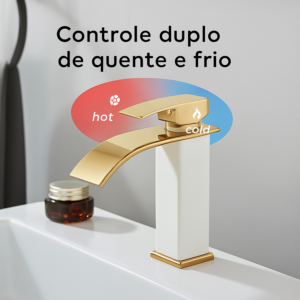Torneira Banheiro Monocomando Aço Inox 304 Luxo Lavatório Branco e Dourado Bica Alta / Baixa Yesop