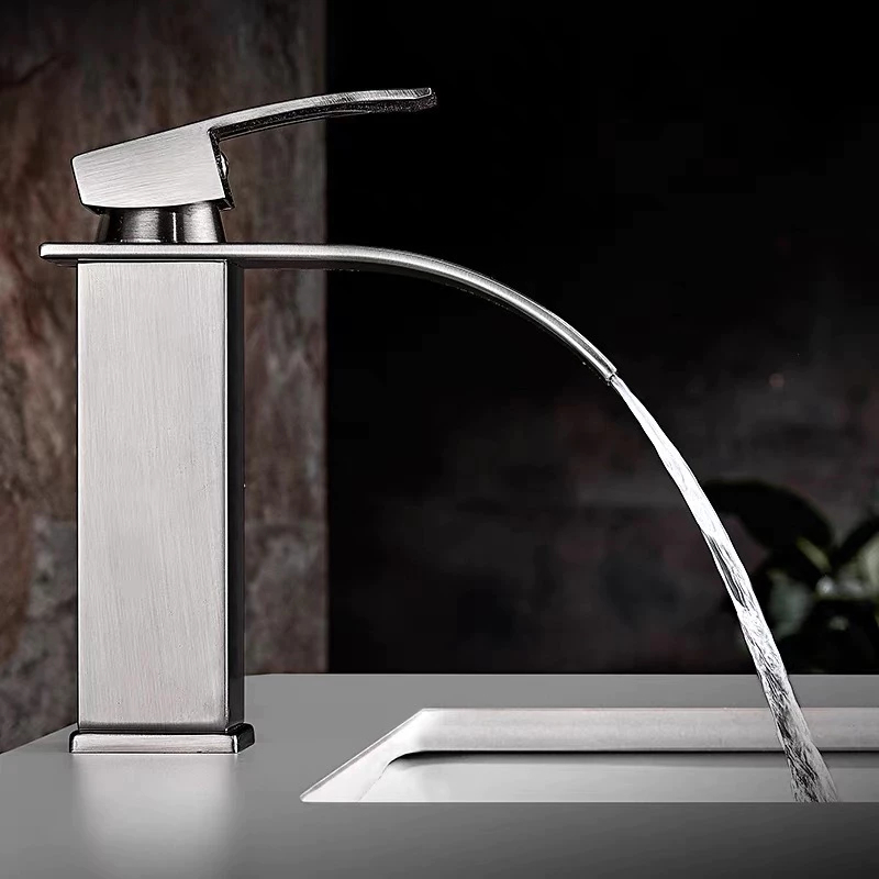 Torneira Banheiro Monocomando Cascata Bica Baixa Prata Luxo de Metal 304 Inox Cromada