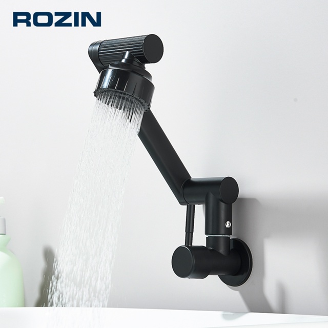 Torneira Banheiro Montada na Parede com Flexível Articulada 720 ° Giratória, Para Água Fria ,Preto