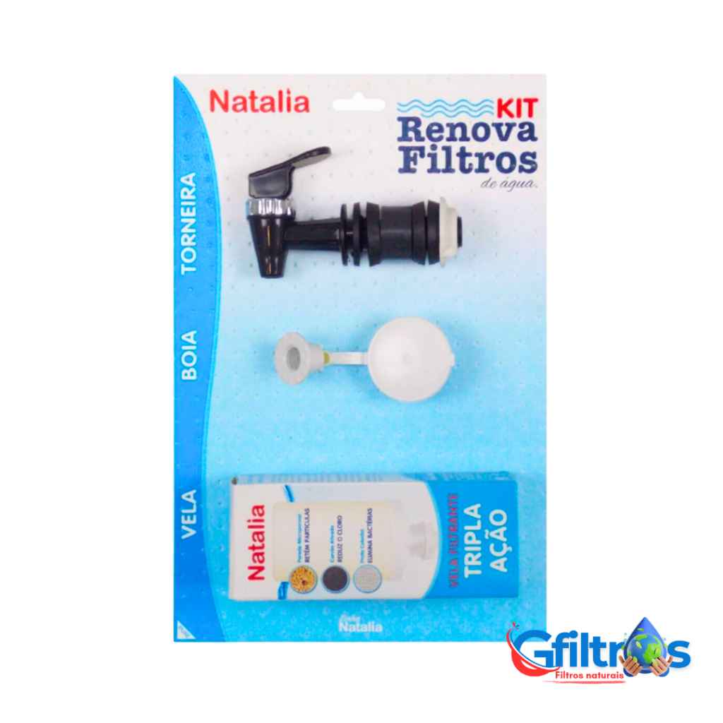 KIT RENOVA NATALIA RENOVA SEU SISTEMA DE FILTRAGEM Contém - 1 Torneira - 1 Boia - 1 Vela TRIPLA AÇÃO Cores - Preto - Branco - Marrom Produto original GMOLD Fabricante Nacional