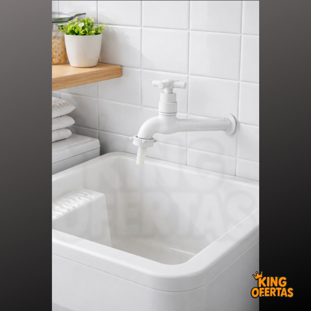 Torneira Branca "Retrô" para Pia / Tanque ou Jardim com Bico p/ Mangueira em ABS
