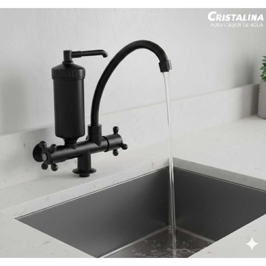 Torneira C/ Filtro De Bancada preto (Crystalina) Com Redução de Cloro