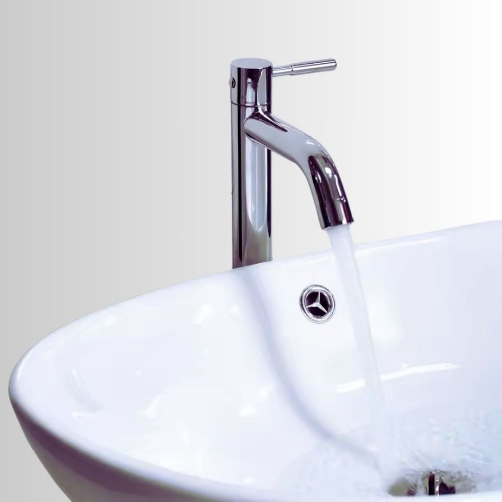 TORNEIRA CLEAN ALTA EM AÇO INOX 304 PARA CUBAS E PIAS DE BANHEIROS E LAVATORIOS - ACABAMENTO CROMADO ESCOVADO E PRETO