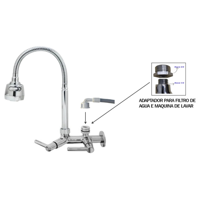 Torneira Com Adaptador De Filtro e Maquina De Lavar Cromada, Torneira Flexivel Gourmet Filtro