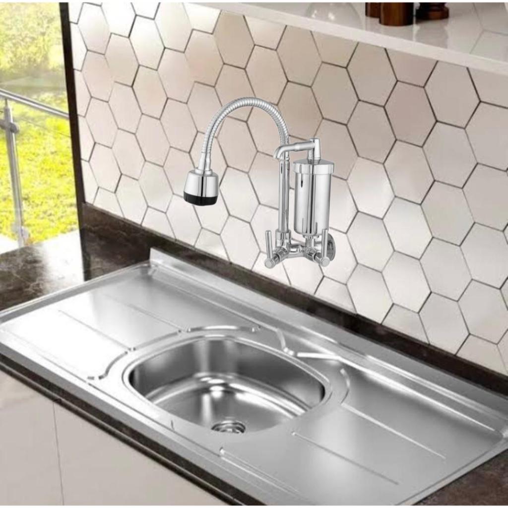 Torneira Com Filtro Cozinha Gourmet Flexivel Parede Bica Movel 1/4 De Volta Abs Cromado